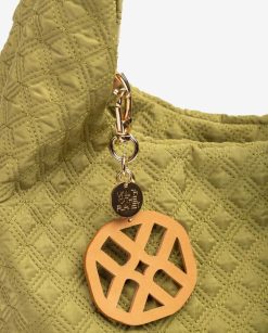 Bolso hobo de gran tamaño confeccionado en tejido fluorescente efecto acolchado. Cierre con corchetes magnéticos y ribete con logo colgado en el asa. 31 cm x 35 cm x 17 cm