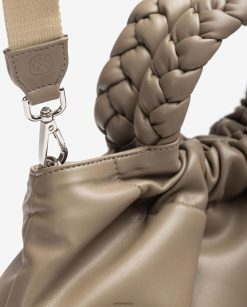 bolso de mano con asa redonda corta a juego. Asa bandolera ajustable a juego en el interior y cierre con corchetes magnéticos.