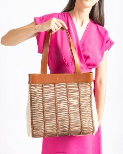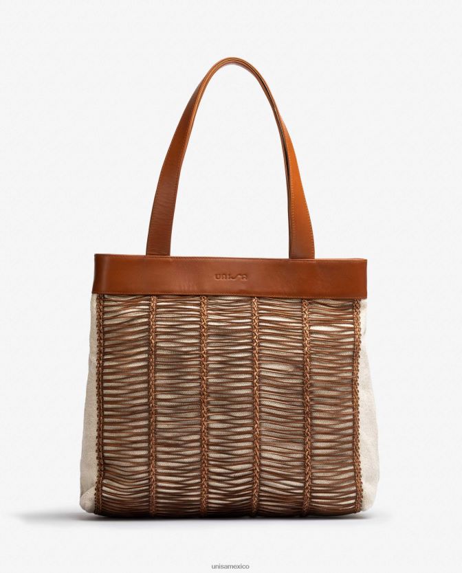 Unisa bolso de mano grande realizado en tela y piel mujer TX8DN41110 marrón