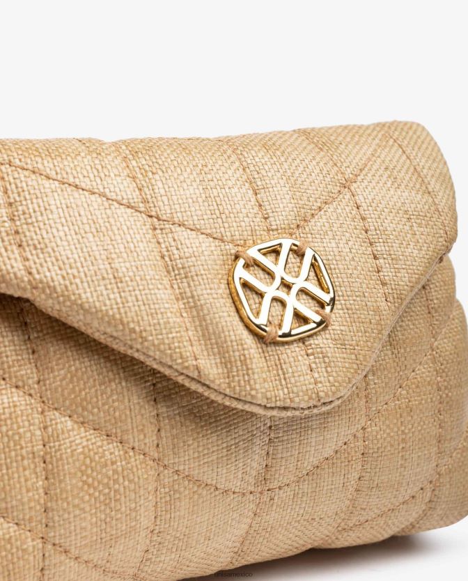pequeño bolso de mano realizado en tejido de rafia. cierre de botón magnético en la solapa y ribete metálico en el centro. correa de cadena y un bolsillo interior. tamaño: 13 cm x 19 cm x 6 cm