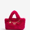 pequeño minibolso hecho de tejido de pelo suave reciclado. ribete de cadena y cierre de cremallera. Bandolera bandolera en el interior. 14 cm x 22 cm x 9 cm