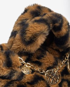 bolso mini pequeño hecho de tejido de pelo suave reciclado. ribete de cadena y cierre de cremallera. Bandolera bandolera en el interior. 14 cm x 22 cm x 9 cm