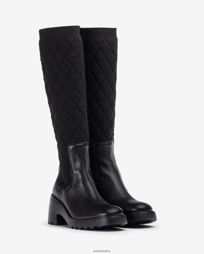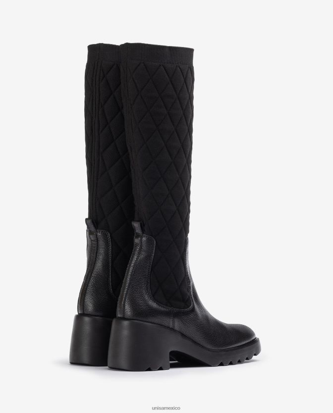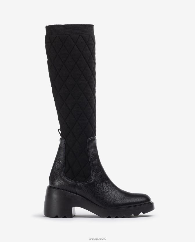 bota confeccionada en piel y tejido elástico elaborado a partir de botellas de plástico recicladas (pet). Suela superligera, muy ligera, flexible y cómoda. Tacón de 7cm de altura y plataforma de 2cm. las botas leiva de unisa serán tus grandes aliadas este invierno.