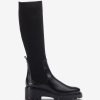 Bota de punta cuadrada confeccionada en tejido elástico efecto ante. Tacón de 8cm y plataforma interior de 1,7cm. Suela de goma ligera, flexible y antideslizante. ribete de costura en la parte delantera. un clásico imprescindible en el mundo unisa.