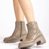 Botín acolchado con efecto geométrico realizado en tejido efecto piel. cremallera en el interior. Suela superligera, muy ligera, flexible y cómoda. Tacón de 7 cm de altura y plataforma de 2 cm. los lawren de unisa serán tus grandes aliados este invierno.