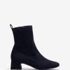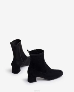 Botines de punta cuadrada confeccionados en tejido elástico efecto ante. Tacón de 4,5 cm a tono y suela de goma antideslizante, ligera y flexible. un clásico imprescindible en el mundo unisa.