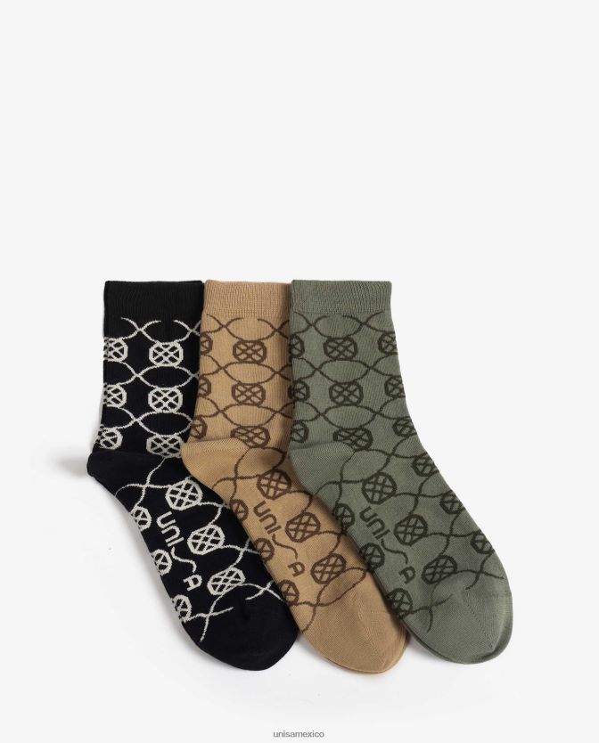 Calcetines de algodón orgánico a media pantorrilla. estampado de monograma en contraste. completa tu look unisa con estos calcetines.