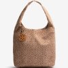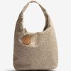 Bolso hobo de gran tamaño realizado en tejido estampado reciclado. Cierre con corchetes magnéticos y ribete con logo colgado en el asa. 31 cm x 35 cm x 17 cm