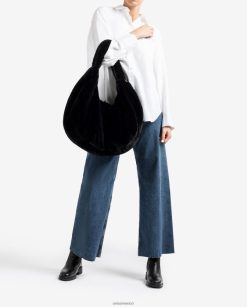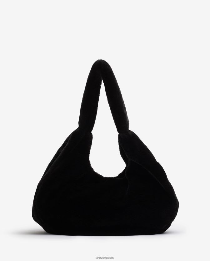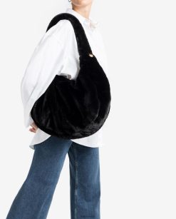 Bolso hobo de tamaño mediano confeccionado en tejido de pelo reciclado. Cierre con corchetes magnéticos y ribete con logo colgado en el asa. 31 cm x 35 cm x 17 cm