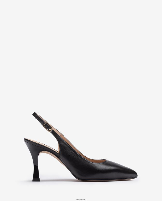Sling back de punta fina confeccionado en piel. Tacón fino de 8 cm pintado en tono a tono. correa en el tobillo que se puede ajustar con la hebilla de metal y suela de goma ligera y antideslizante. ¡el diseño del modelo teodor de unisa te sorprenderá!