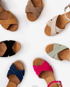sandalia de ante con punta redonda. correa de tobillo que se puede ajustar con la hebilla de metal y correas cruzadas en la parte delantera. Tacón bloque ligero de 5,5 cm de altura y plataforma efecto madera de 3 cm. Suela de goma ligera y antideslizante. Esencia de unisa en estado puro.