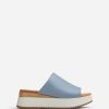 Sandalia de tacón cuña con amplio empeine de piel en el empeine. Tacón de cuña de 6 cm y plataforma muy ligera de 3,5 cm. suela de goma ligera y flexible.