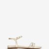 Sandalia plana realizada en piel efecto metalizado. correa acolchada en la parte delantera y una correa en el tobillo que se puede ajustar con la hebilla de metal. Suela de goma ligera, flexible y antideslizante. el diseño y la comodidad que te brinda unisa te acompañarán en todos tus pasos.