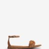 Sandalia plana en piel efecto metalizado. Empeine trenzado con tirantes acolchados. correa de tobillo ajustable que tiene una hebilla de metal. Suela de goma antideslizante, ligera y flexible. unas sandalias con un diseño marcado y rompedor perfectas para este verano.
