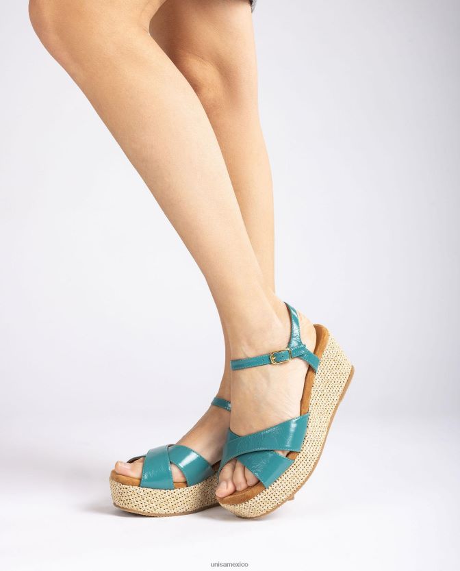 Unisa sandalia con tacón bloque de rafia mujer TX8DN4161 verde