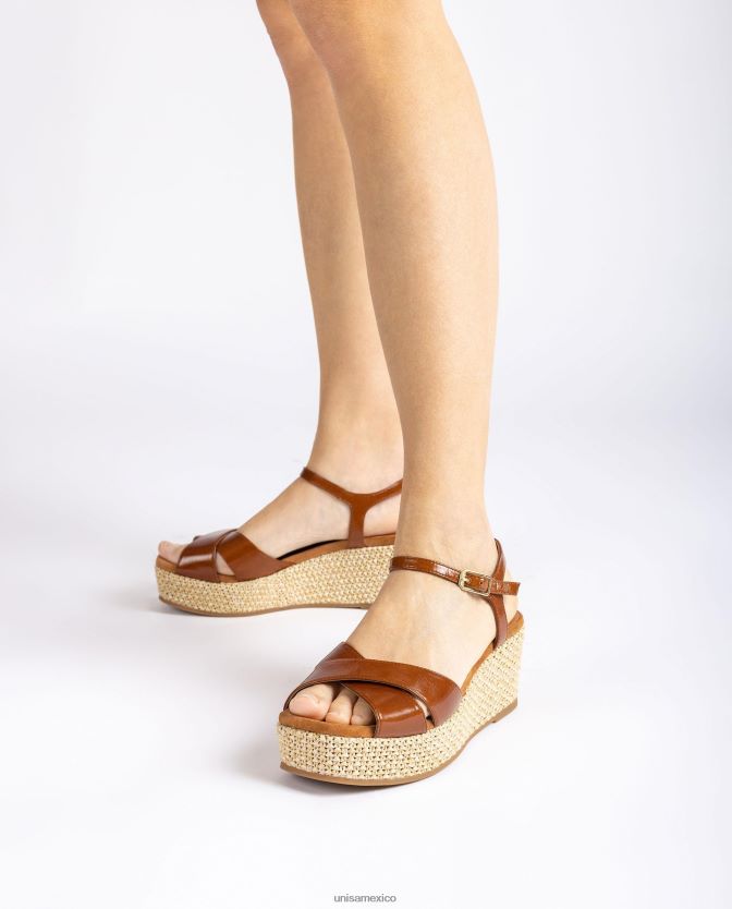 Unisa sandalia con tacón bloque de rafia mujer TX8DN4162 marrón