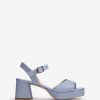 Sandalia de punta cuadrada realizada en tejido brillante. Tirantes anchos en la parte delantera y una correa en el tobillo que se puede ajustar con la hebilla de metal. Tacón de 7cm y plataforma de 2,5cm a juego. Suela de goma ligera y antideslizante. formas sencillas y limpias que hacen de cada modelo una pieza única.