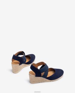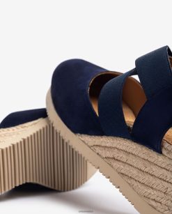 Sandalia de ante con elásticos cruzados y cuña forrada en yute natural. Tacón de 7,5 cm y plataforma de 2,5 cm. suela de goma ligera y flexible.