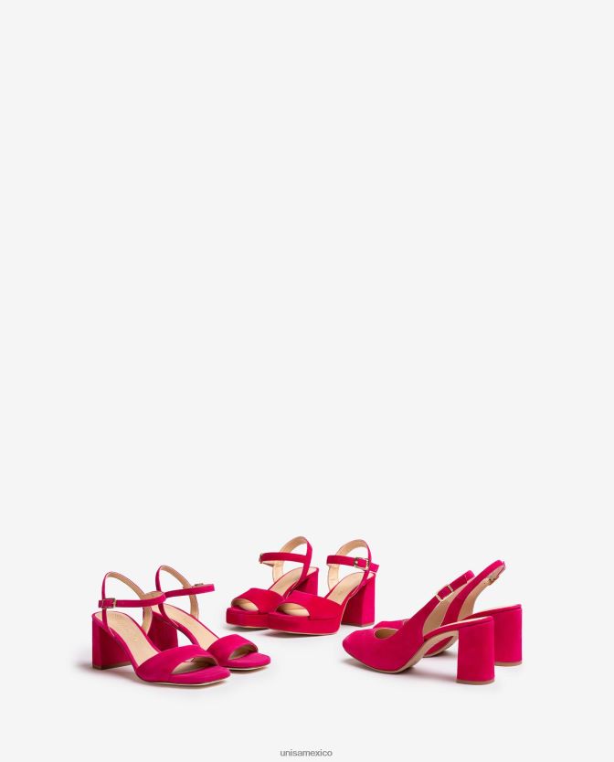 Unisa sandalia de ante con tacón ancho mujer TX8DN483 rosa
