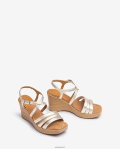 Sandalia realizada en piel metalizada con tiras acolchadas. Correa ajustable con hebilla de metal. cuña de 8,5 cm en color natural y plataforma de 2,5 cm. suela de goma antideslizante.