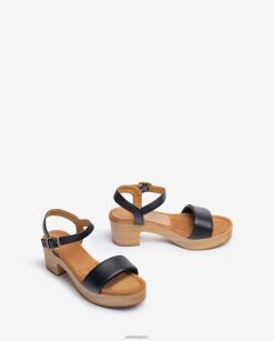 Unisa sandalia de piel con taco efecto madera mujer TX8DN4317 negro