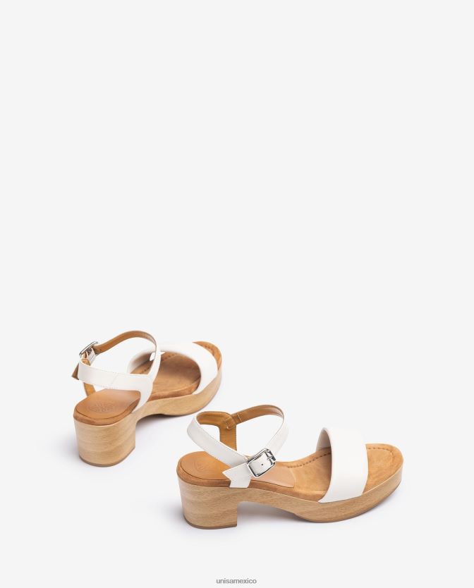 Unisa sandalia de piel con taco efecto madera mujer TX8DN4318 blanco