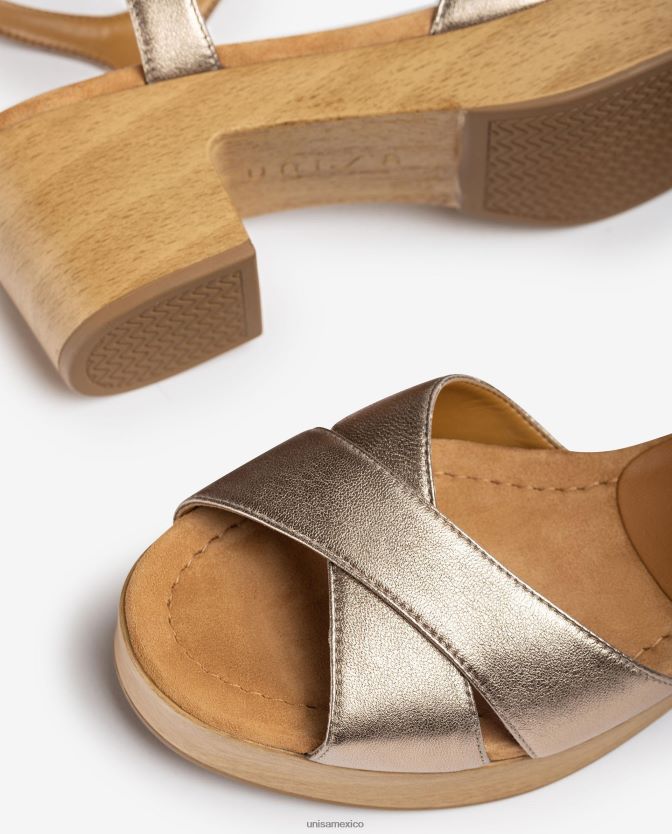 Unisa sandalia de piel con tacón medio mujer TX8DN4418 bronce