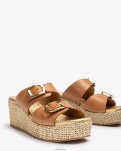 Sandalia de punta cuadrada realizada en piel. Doble tira en el empeine que se puede ajustar mediante las hebillas doradas. Cuña forrada en rafia natural de 5cm y plataforma de 3cm. Suela de goma ligera y antideslizante. comodidad llevada a su máximo esplendor.