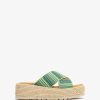 sandalia de punta redonda con tiras cruzadas multicolor. Tacón ancho de 4,5 cm de altura y plataforma de 3 cm, revestido en rafia de color natural. Espuma gruesa en toda la suela para mayor comodidad. comodidad llevada a su máximo esplendor.