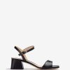 Sandalia de punta cuadrada realizada en piel efecto metalizado. Tacón de 7cm a tono. suela de cuero. una correa de tobillo que se puede ajustar con la elegancia de la hebilla de metal y delicadeza en tus pies.