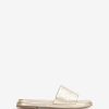Sandalia plana de punta redonda realizada en piel. Amplio empeine con monograma a juego grabado. suela de goma ligera, flexible y antideslizante.