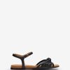 sandalia plana de piel. Tirantes anudados en la parte superior del empeine. correa de tobillo que se puede ajustar con la hebilla. suela de goma antideslizante, ligera y flexible.