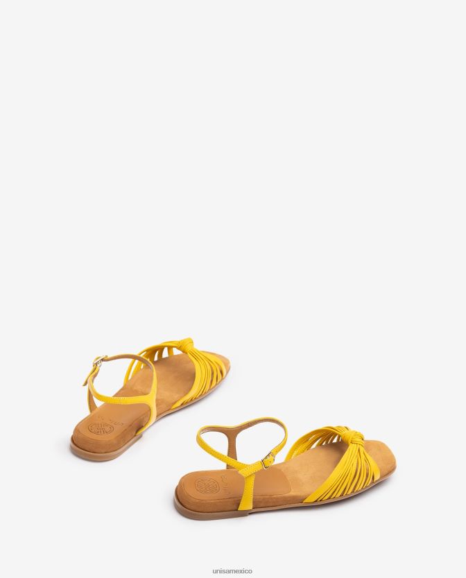 Unisa sandalia plana de piel con múltiples tiras mujer TX8DN4333 amarillo