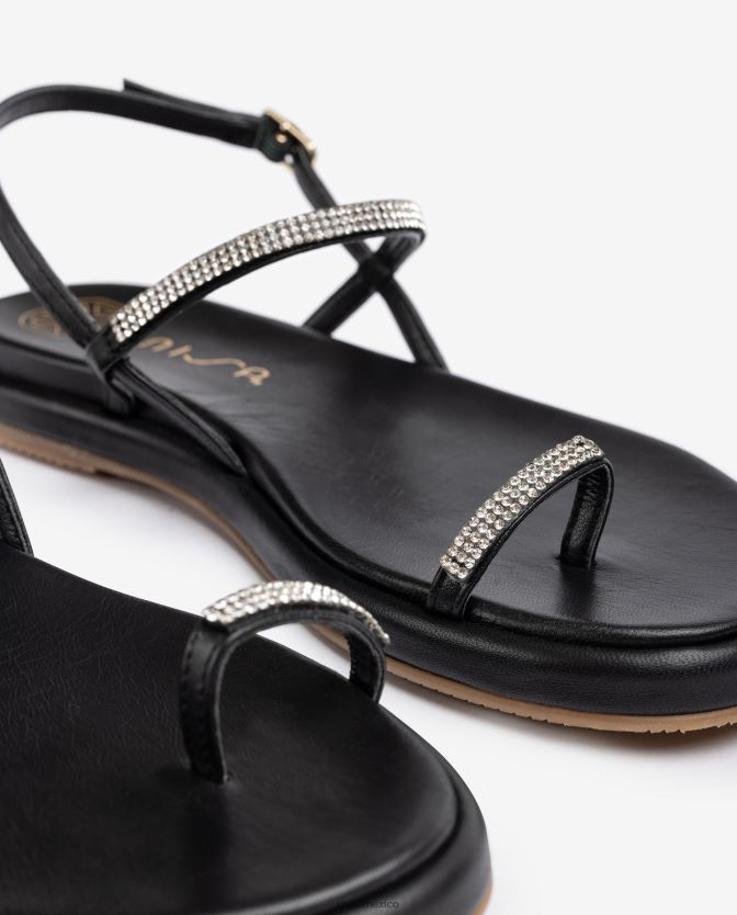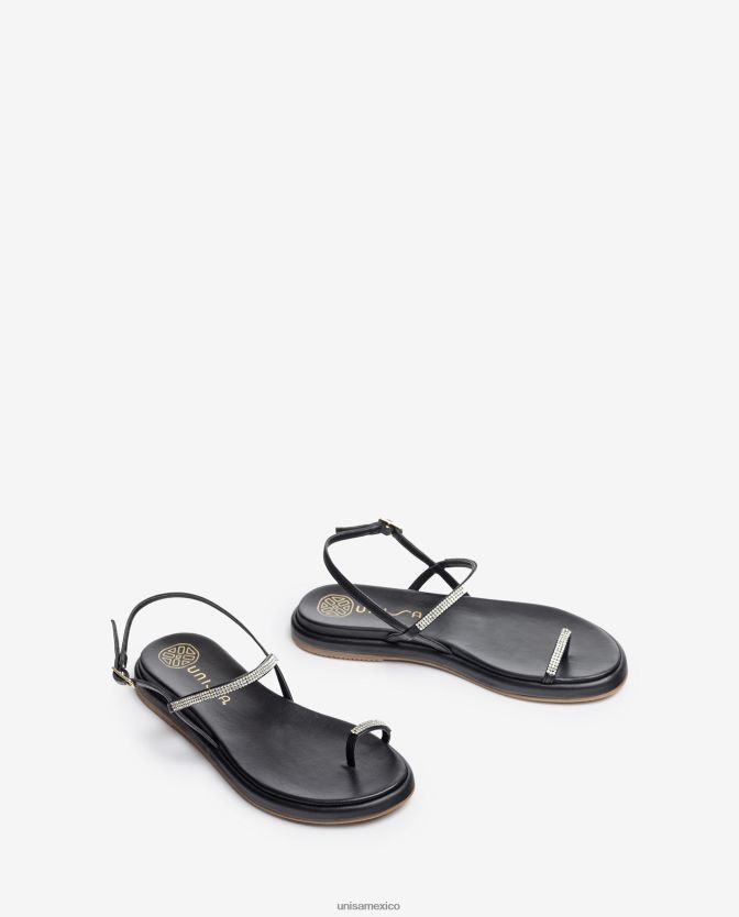 Unisa sandalia plana de piel con puntera mujer TX8DN41312 negro