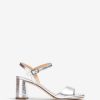 Sandalia de suela cuadrada realizada en piel efecto espejo. Tacón ancho de 6cm en tono a tono. una correa de tobillo que se puede ajustar con la hebilla de metal. suela de cuero.