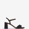 Sandalia de suela cuadrada realizada en tejido brillante. Tacón ancho de 6cm en tono a tono. una correa de tobillo que se puede ajustar con la hebilla de metal. suela de cuero.