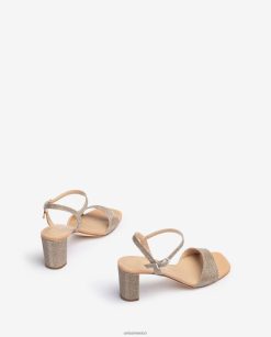 sandalias en tejido efecto brillo. Hebilla metálica ajustable en el talón. suela cuadrada forrada en piel a tono y tacón ancho de 6cm de altura. suela de cuero antideslizante. unas sandalias de tacón sensato, pensadas para tu día a día.