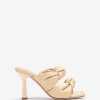 Sandalias de piel confeccionadas con tiras acolchadas formando dos nudos. con un tacón geométrico de 8,5cm y una suela muy acolchada para tu comodidad, ¡te sorprenderá la comodidad de estas sandalias!