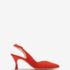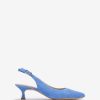 zapato de gamuza con tira trasera en punta. Tacón fino de 5 cm de altura en tono a juego. correa de tobillo que se puede ajustar con la hebilla de metal. Suela de goma ligera, flexible y antideslizante. Versatilidad y elegancia en estado puro.