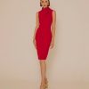 es un vestido midi con falda asimétrica. cuello redondo y manga francesa con volantes en los hombros. Cierre de cremallera invisible en la espalda.