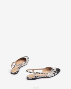Zapato plano destalonado realizado en piel con puntera a contraste. Línea superior en forma de v y una correa en el tobillo que se puede ajustar con una hebilla de metal. Suela de goma ligera, flexible y antideslizante. diseños divertidos para todos los días.