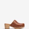Zueco de punta redonda realizado en piel. Tacón bloque ligero efecto madera de 5,5 cm de altura y plataforma de 3 cm. ribete de tachuelas de metal y correa con perforaciones geométricas. Suela de goma ligera y antideslizante. clásicos renovados para nuestra nueva colección de verano 2023.